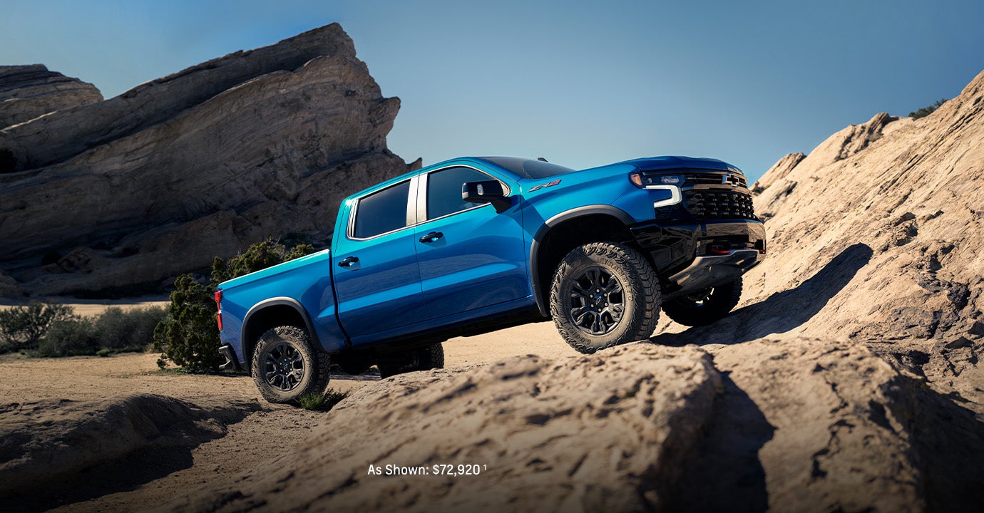 Silverado ZR2 is most at home when it goes off road. Outfitted with a long list of performance and capability features, ZR2 has what it takes to tame any trail.