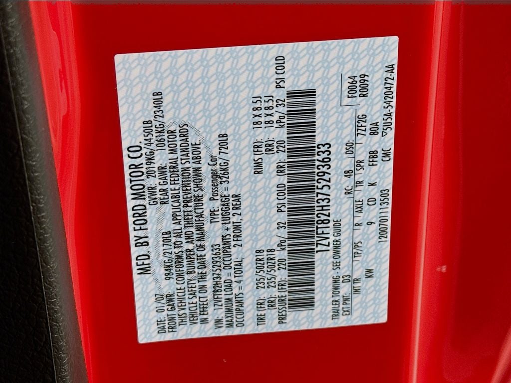 2007 Ford Mustang GT Premium ABS brakes, Alloy wheels, Illuminated entry, Low tire pressure warning, Remote keyless entry, Traction control.
