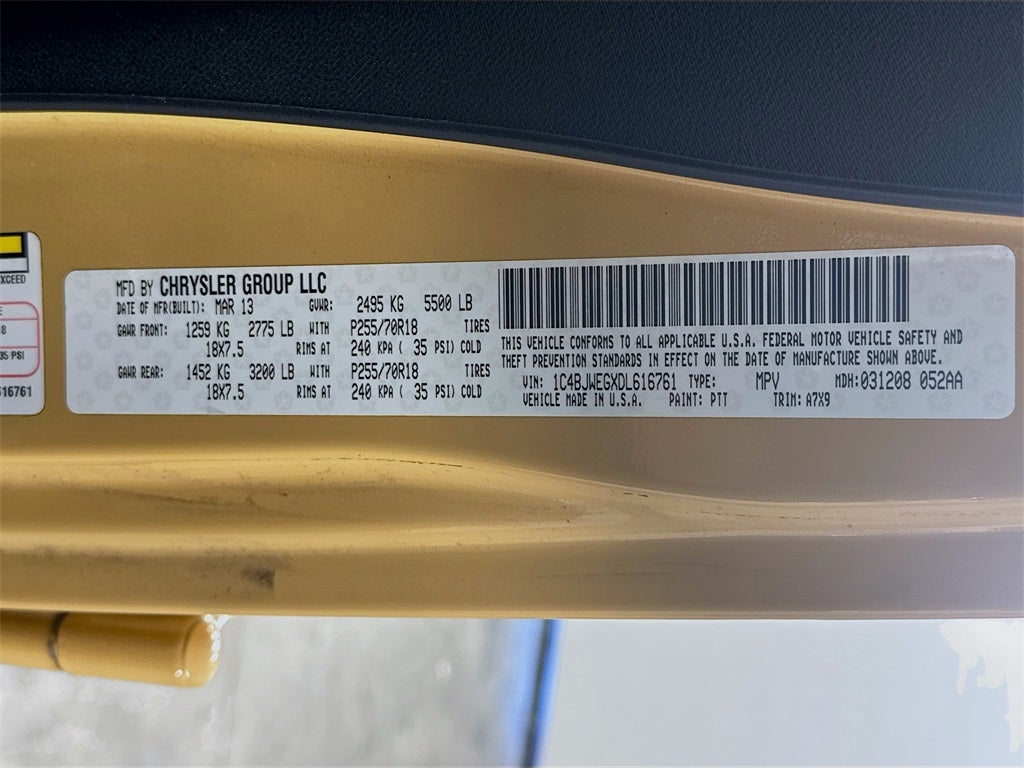 2013 Jeep Wrangler Unlimited Sahara 18 x 7.5 Polished Satin Carbon Wheels, 4-Wheel Disc Brakes, 7 Speakers, ABS brakes, Air Conditioning, Alloy wheels, AM/FM radio: SIRIUS, Audio Jack Input for Mobile Devices, Auto-dimming Rear-View mirror, Black 3-Piece Hard Top, Brake assist, CD player, Class II Receiver Hitch, Cloth Bucket Seats, Compass, Connectivity Group, Driver door bin, Driver vanity mirror, Dual front impact airbags, Electronic Stability Control, Freedom Panel Storage Bag, Front anti-roll bar, Front Bucket Seats, Front Center Armrest w/Storage, Front fog lights, Front reading lights, Fully automatic headlights, Heated door mirrors, Heavy Duty Suspension w/Gas Shocks, Illuminated entry, Integrated roll-over protection, Leather steering wheel, Low tire pressure warning, MOPAR Slush Mats, Occupant sensing airbag, Outside temperature display, Panic alarm, Passenger door bin, Passenger vanity mirror, Power door mirrors, Power steering, Power windows, Quick Order Package 24G, Radio data system, Radio: Uconnect 130 AM/FM/CD/MP3, Rear anti-roll bar, Rear Window Defroster, Rear Window Wiper/Washer, Remote keyless entry, Remote Start System, Security system, Speed control, Split folding rear seat, Steering wheel mounted audio controls, Sunrider Soft Top, Tachometer, Tilt steering wheel, Tire Pressure Monitoring Display, Traction control, Trailer Tow Group, Trailer Tow w/4-Pin Connector Wiring, Trip computer, Variably intermittent wipers, Vehicle Information Center.