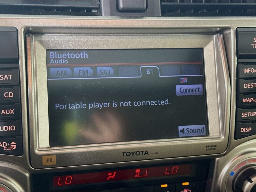 2013 Toyota 4Runner SR5 120V/400W AC Power Outlets, 3.727 Axle Ratio, 4-Wheel Disc Brakes, 8 Speakers, ABS brakes, Air Conditioning, Alloy wheels, AM/FM radio: SiriusXM, Anti-Theft Alarm System w/Engine Immobilizer, Anti-whiplash front head restraints, Brake assist, Bumpers: body-color, CD player, Compass, Driver door bin, Driver vanity mirror, Dual front impact airbags, Dual front side impact airbags, Electronic Stability Control, Front anti-roll bar, Front Bucket Seats, Front Center Armrest, Front fog lights, Front reading lights, Front wheel independent suspension, Garage door transmitter: HomeLink, Heated Bucket Seats, Heated door mirrors, Illuminated entry, Knee airbag, Leather Seat Trim, Low tire pressure warning, Occupant sensing airbag, Outside temperature display, Overhead airbag, Overhead console, Panic alarm, Passenger door bin, Passenger vanity mirror, Power door mirrors, Power steering, Power Tilt & Slide Moonroof w/Sunshade, Power windows, Radio: Display Audio with Navigation and Entune, Rear anti-roll bar, Rear seat center armrest, Rear window defroster, Rear window wiper, Remote keyless entry, Roof rack: rails only, Sliding Rear Cargo Deck, Speed control, Speed-sensing steering, Split folding rear seat, Spoiler, Steering wheel mounted audio controls, Tachometer, Telescoping steering wheel, Tilt steering wheel, Traction control, Trip computer, Trunk Carpet, Turn signal indicator mirrors, Variably intermittent wipers, Voltmeter.