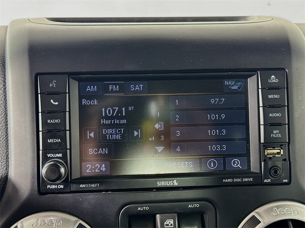 2014 Jeep Wrangler Unlimited Rubicon 1-Year SIRIUSXM Travel Link Service, 17 x 7.5 Polished Mineral Gray Wheels, 3.73 Rear Axle Ratio, 4-Wheel Disc Brakes, 40GB Hard Drive w/28GB Available, 6.5 Touch Screen Display, 7 Speakers, ABS brakes, Air Conditioning, Alloy wheels, AM/FM radio, Audio Jack Input for Mobile Devices, Auto-dimming Rear-View mirror, Body Color Fender Flares, Brake assist, CD player, Class II Receiver Hitch, Cloth Bucket Seats, Compass, Connectivity Group, Delete Sunrider Soft Top, Driver door bin, Driver vanity mirror, Dual front impact airbags, Electronic Stability Control, Freedom Panel Storage Bag, Front anti-roll bar, Front Bucket Seats, Front Center Armrest w/Storage, Front fog lights, Front reading lights, Fully automatic headlights, GPS Navigation, Heated door mirrors, Heated Front Seats, Illuminated entry, Integrated roll-over protection, Leather steering wheel, Low tire pressure warning, Max Tow Package, MOPAR Slush Mats, Occupant sensing airbag, Outside temperature display, Panic alarm, Passenger door bin, Passenger vanity mirror, Performance Suspension, Power door mirrors, Power steering, Power windows, Quick Order Package 24R, Radio data system, Radio: Uconnect 130 AM/FM/CD/MP3, Radio: Uconnect 430N CD/DVD/MP3/HDD/NAV, Rear anti-roll bar, Rear Window Defroster, Rear Window Wiper/Washer, Remote keyless entry, Remote Start System, Remote USB Port, Security system, SIRIUSXM Travel Link, Speed control, Split folding rear seat, Steering wheel mounted audio controls, Tachometer, Tilt steering wheel, Tire Pressure Monitoring Display, Traction control, Trailer Tow w/4-Pin Connector Wiring, Trip computer, Uconnect Voice Command w/Bluetooth®, Variably intermittent wipers, Vehicle Information Center.