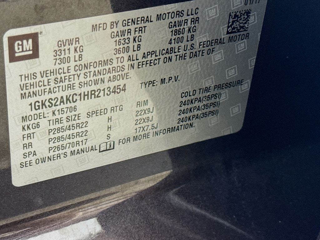 2017 GMC Yukon SLE 17 Disc/Disc VAC Power Brakes, 3.08 Rear Axle Ratio, 3rd row seats: split-bench, 4-Wheel Disc Brakes, 5 Auxiliary 12-volt Power Outlets, 9 Speakers, ABS brakes, Air Conditioning, All-Weather Floor Mats, Alloy wheels, AM/FM radio: SiriusXM, Apple CarPlay/Android Auto, Automatic temperature control, Black Assist Steps w/Chrome Strip, Bose Premium 9-Speaker System, Brake assist, Bumpers: body-color, CD Player, CD player, Compass, Convenience Package, Delay-off headlights, Driver door bin, Driver vanity mirror, Dual front impact airbags, Dual front side impact airbags, Electronic Stability Control, Emergency communication system: OnStar Guidance, Enhanced Driver Alert Package, Enhanced Driver Alert Package (Y86), Exterior Parking Camera Rear, Forward Collision Alert Sensor Indicator, Front anti-roll bar, Front Bucket Seats, Front Center Armrest, Front dual zone A/C, Front fog lights, Front reading lights, Front wheel independent suspension, Fully automatic headlights, Heated door mirrors, Illuminated entry, Inside Rear-View Auto-Dimming Mirror, Intellibeam Automatic High Beam On/Off Headlamps, Lane Keep Assist, Low Speed Forward Automatic Braking, Low tire pressure warning, Manual Rear Liftgate, Occupant sensing airbag, OnStar Basic Plan For 5 Years, OnStar w/4G LTE, Outside temperature display, Overhead airbag, Overhead console, Panic alarm, Passenger door bin, Passenger vanity mirror, Power door mirrors, Power driver seat, Power passenger seat, Power Rear Liftgate, Power steering, Power windows, Power-Adjustable Pedals For Accelerator & Brake, Preferred Equipment Group 3SA, Premium audio system: IntelliLink, Premium Cloth Seat Trim, Premium Smooth Ride Suspension Package, Radio: AM/FM/SiriusXM, Rain sensing wipers, Rear air conditioning, Rear anti-roll bar, Rear reading lights, Rear seat center armrest, Rear window defroster, Rear window wiper, Remote keyless entry, Roof rack: rails only, Security system, SiriusXM Satellite Radio, Speed control, Speed-sensing steering, Split folding rear seat, Spoiler, Steering wheel mounted audio controls, Tachometer, Tilt steering wheel, Traction control, Trip computer, Universal Home Remote, Variably intermittent wipers, Voltmeter, Wheels: 18 x 8.5 Bright Machined Aluminum, Wheels: 22 x 9 6-Spoke Chrome.