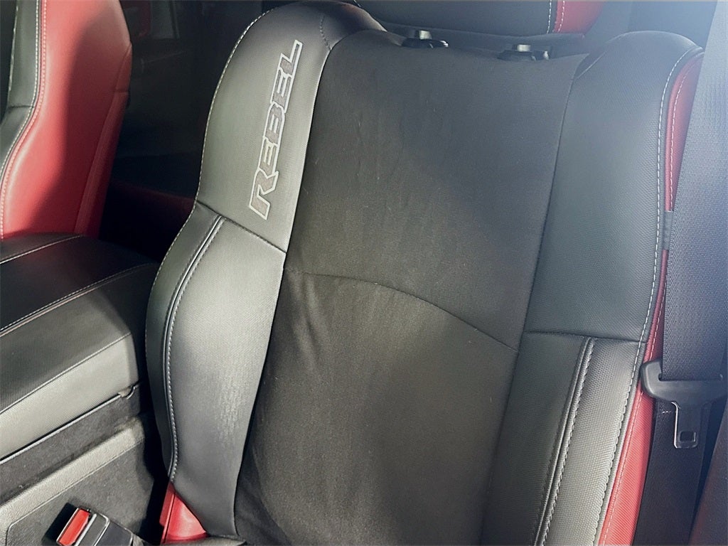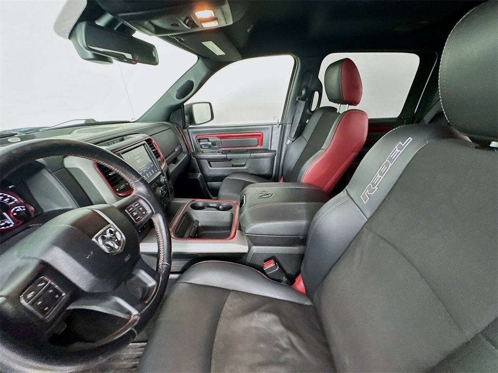 2017 Ram 1500 Rebel 1 Yr. Trial (Registration Required), 3.92 Rear Axle Ratio, 4-Wheel Disc Brakes, 5-Year SiriusXM Traffic Service, 5-Year SiriusXM Travel Link Service, 6 Speakers, 8.4 Touchscreen Display, 9 Alpine Speakers w/Subwoofer, ABS brakes, Air Conditioning, Alloy wheels, AM/FM radio, Audio Jack Input for Mobile Devices, Auto-Dimming Exterior Mirrors, Auto-Dimming Rear-View Mirror, Auto-leveling suspension, Automatic temperature control, Brake assist, Bright Rotary Shifter, Compass, Delay-off headlights, Driver door bin, Dual front impact airbags, Dual front side impact airbags, Dual Rear Exhaust w/Bright Tips, Electronic Shift, Electronic Stability Control, Emergency communication system: Uconnect Access, Exterior Mirrors Courtesy Lamps, Exterior Mirrors w/Supplemental Signals, Flat Black 5.7L Hemi Badge, Flat Black Ram 1500 Badge, Front anti-roll bar, Front Bucket Seats, Front Center Armrest w/Storage, Front dual zone A/C, Front fog lights, Front reading lights, Front wheel independent suspension, Fully automatic headlights, Glove Box Lamp, GPS Antenna Input, GPS Navigation, HD Radio, Heated door mirrors, Heated front seats, Heated steering wheel, Illuminated entry, Integrated Voice Command w/Bluetooth®, Keyless Enter-N-Go, Leather steering wheel, LED Bed Lighting, Low tire pressure warning, Luxury Group, Media Hub (USB, AUX), Occupant sensing airbag, Outside temperature display, Overhead airbag, Overhead console, Overhead Console w/Garage Door Opener, Panic alarm, ParkView Rear Back-Up Camera, Passenger door bin, Passenger vanity mirror, Power door mirrors, Power driver seat, Power Heated Fold-Away Mirrors, Power passenger seat, Power steering, Power windows, Power-Folding Mirrors, Premium Cloth Seats w/Emboss Tread Pattern, Protection Group, Quick Order Package 26W Rebel, Radio data system, Radio: Uconnect 3C Nav w/8.4 Display, Radio: Uconnect 3C w/8.4 Display, Ram Glove Box Badge, Rear anti-roll bar, Rear Dome w/On/Off Switch Lamp, Rear seat center armrest, Rear step bumper, Remote keyless entry, Remote Proximity Keyless Entry, Remote USB Port, Security system, SIRIUSXM Satellite Radio, SIRIUSXM Traffic, SiriusXM Travel Link, Speed control, Split folding rear seat, Spray In Bedliner, Steering wheel mounted audio controls, Sun Visors w/Illuminated Vanity Mirrors, Tachometer, Tilt steering wheel, Tip Start, Tonneau Cover w/Embossed Ram's Head, Traction control, Trailer Brake Control, Trip computer, Uconnect Access, Uconnect Access 1 Year Trial, Underhood Lamp, Universal Garage Door Opener, Variably intermittent wipers, Voltmeter, Wheels: 17 x 8 Aluminum w/Matte Black Pocket.