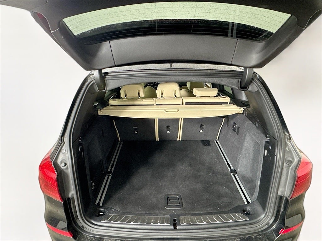 2019 BMW X3 sDrive30i 12 Speakers, 3.39 Axle Ratio, 4-Wheel Disc Brakes, ABS brakes, Active Blind Spot Detection, Active Driving Assistant, Air Conditioning, Alloy wheels, AM/FM radio, Auto-dimming door mirrors, Auto-dimming Rear-View mirror, Automatic temperature control, Brake assist, Bumpers: body-color, Delay-off headlights, Driver door bin, Driver vanity mirror, Dual front impact airbags, Dual front side impact airbags, Electronic Stability Control, Emergency communication system: BMW Assist eCall, Exterior Parking Camera Rear, Four wheel independent suspension, Front anti-roll bar, Front Bucket Seats, Front Center Armrest, Front dual zone A/C, Front fog lights, Front reading lights, Fully automatic headlights, Garage door transmitter, Genuine wood dashboard insert, Genuine wood door panel insert, Hands-Free Bluetooth® & USB Audio Connection, Heated door mirrors, Hi-Fi Sound System, Illuminated entry, Knee airbag, Lane Departure Warning System, Low tire pressure warning, Memory seat, Occupant sensing airbag, Outside temperature display, Overhead airbag, Panic alarm, Panoramic Moonroof, Passenger door bin, Passenger vanity mirror, Power door mirrors, Power driver seat, Power Front Seats, Power Liftgate, Power passenger seat, Power steering, Power windows, Radio data system, Radio: AM/FM Stereo w/HD, Rain sensing wipers, Rear air conditioning, Rear anti-roll bar, Rear reading lights, Rear seat center armrest, Rear window defroster, Rear window wiper, Remote keyless entry, Roof rack: rails only, Security system, SensaTec Upholstery, Speed control, Speed-sensing steering, Speed-Sensitive Wipers, Split folding rear seat, Spoiler, Sport Bucket Seats, Sport Leather Steering Wheel, Sport steering wheel, Steering wheel mounted audio controls, Tachometer, Telescoping steering wheel, Tilt steering wheel, Traction control, Trip computer, Turn signal indicator mirrors, Variably intermittent wipers, Wheels: 18 x 7.0 Y-Spoke (Style 688), Wheels: 19 x 7.5 V-Spoke (Style 692).
