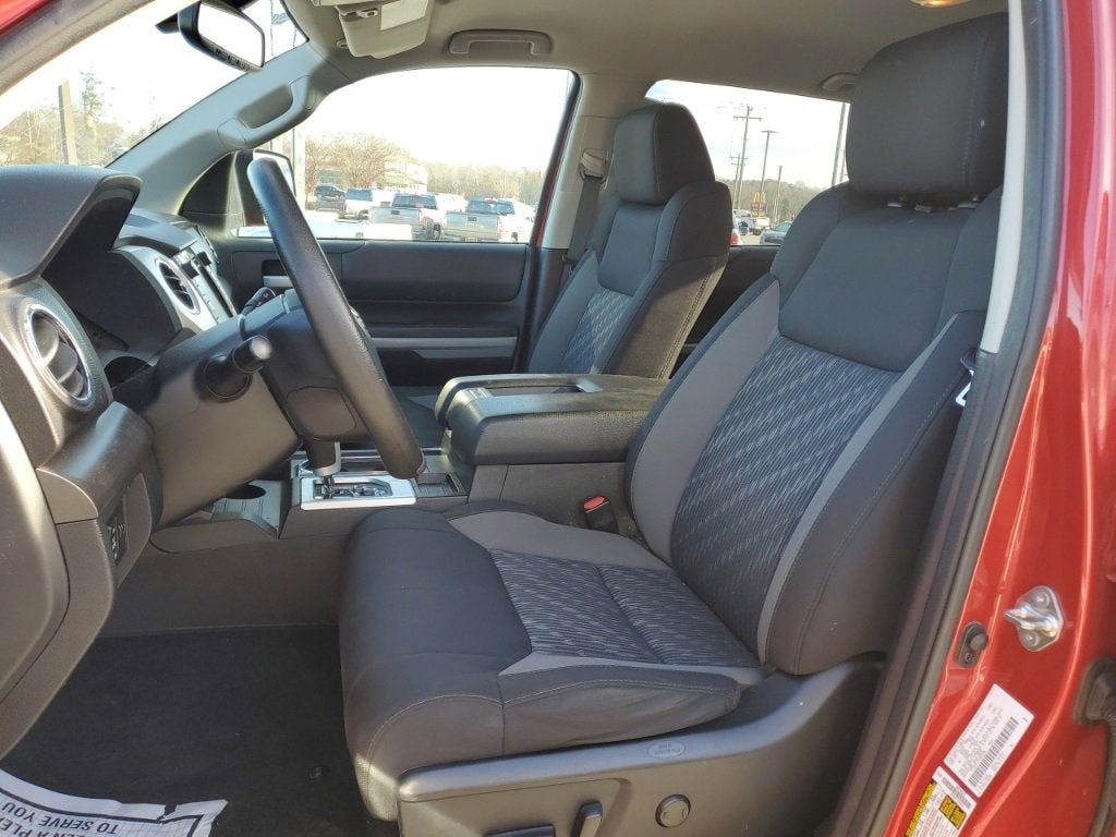 Red 2019 Toyota Tundra SR5 CrewMax 4WD 6-Speed Automatic Electronic i-Force 5.7L V8 DOHC 32V LEV 4WD, Black Cloth, 18 x 8J Styled Steel Wheels, 3-Passenger Front Bench Seat, 38 Gallon Fuel Tank Capacity, 4-Wheel Disc Brakes, 4.30 Axle Ratio, 6 Speakers, ABS brakes, Air Conditioning, AM/FM radio: SiriusXM, Anti-Theft Immobilizer w/Alarm, Auto High-beam Headlights, Auto-Dimming Rear-View Mirror, Auto-dimming Rear-View mirror, Brake assist, CD player, Compass, Deck Rail System, Delay-off headlights, Driver door bin, Driver vanity mirror, Dual front impact airbags, Dual front side impact airbags, Electronic Stability Control, Exterior Parking Camera Rear, Fabric Seat Trim, Front anti-roll bar, Front Bucket Seats, Front Center Armrest w/Storage, Front fog lights, Front reading lights, Front wheel independent suspension, Fully automatic headlights, Garage door transmitter: HomeLink, Heated door mirrors, HomeLink Universal Transceiver, Illuminated entry, Knee airbag, Leather Shift Knob, Low tire pressure warning, Occupant sensing airbag, Outside temperature display, Overhead airbag, Overhead console, Panic alarm, Passenger door bin, Passenger vanity mirror, Power door mirrors, Power steering, Power windows, Radio: Entune Audio Plus AM/FM/HD Radio w/CD, Radio: Entune Premium Audio AM/FM w/HD Radio & CD, Rear reading lights, Rear seat center armrest, Rear step bumper, Rear window defroster, Remote keyless entry, Speed control, Speed-sensing steering, Split folding rear seat, Tachometer, Tilt steering wheel, Traction control, TRD Shift Knob, Trip computer, Variably intermittent wipers, Voltmeter, 4WD, Black Cloth.Recent Arrival! Odometer is 1898 miles below market average!Awards:* 2019 KBB.com Best Resale Value Awards * 2019 KBB.com Brand Image Awards