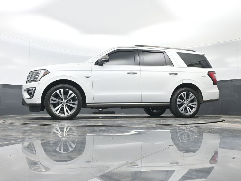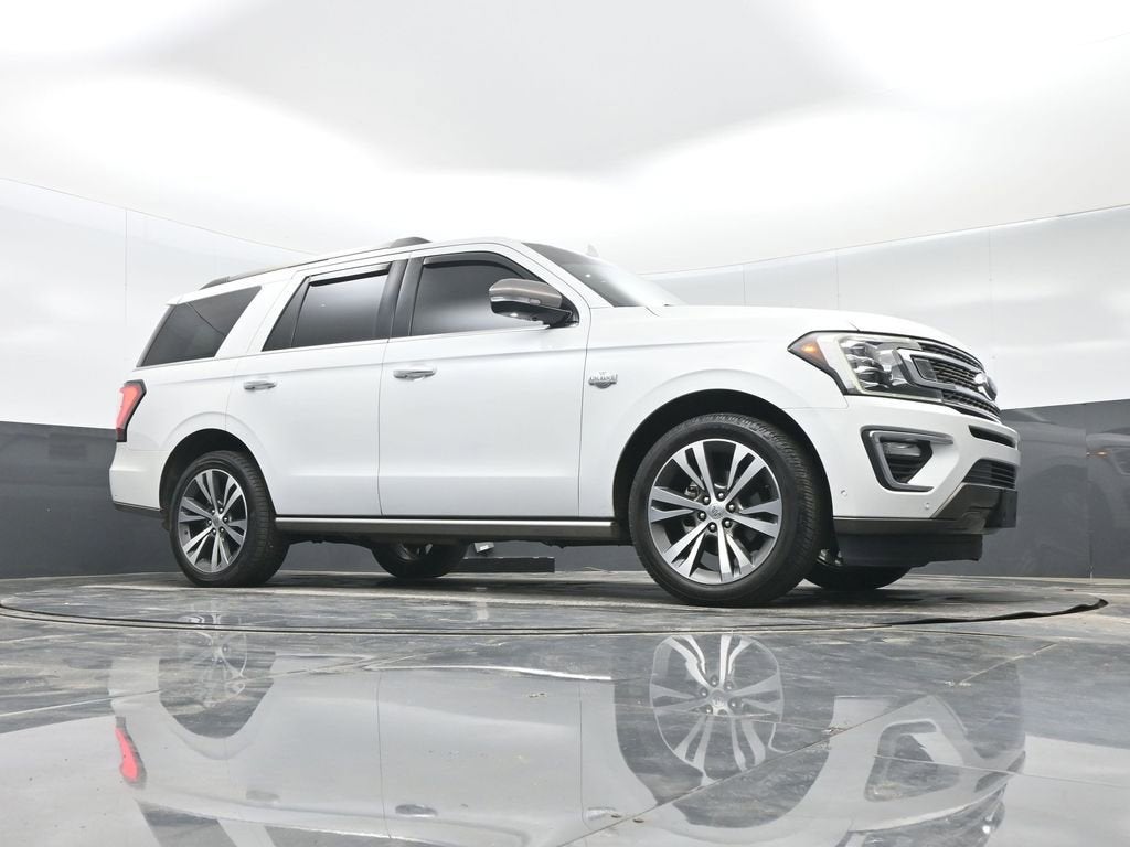 White Metallic 2020 Ford Expedition King Ranch RWD 10-Speed Automatic EcoBoost 3.5L V6 GTDi DOHC 24V Twin Turbocharged 12 Speakers, 3.15 Axle Ratio, 3rd row seats: split-bench, 4-Wheel Disc Brakes, ABS brakes, Adaptive suspension, Adjustable pedals, Air Conditioning, Alloy wheels, AM/FM radio: SiriusXM, Auto High-beam Headlights, Auto-dimming door mirrors, Auto-dimming Rear-View mirror, Automatic temperature control, Brake assist, Bumpers: body-color, Compass, Delay-off headlights, Driver door bin, Driver vanity mirror, Dual front impact airbags, Dual front side impact airbags, Electronic Stability Control, Emergency communication system: SYNC 3 911 Assist, Equipment Group 400A, Exterior Parking Camera Rear, Four wheel independent suspension, Front anti-roll bar, Front Bucket Seats, Front Center Armrest, Front dual zone A/C, Front fog lights, Front reading lights, Fully automatic headlights, Garage door transmitter, Genuine wood console insert, Genuine wood dashboard insert, Genuine wood door panel insert, Heated door mirrors, Heated front seats, Heated rear seats, Heated steering wheel, Heated/Cooled Del Rio Leather Fr Captain's Chairs, Illuminated entry, Leather steering wheel, Low tire pressure warning, Memory seat, Navigation System, Occupant sensing airbag, Outside temperature display, Overhead airbag, Overhead console, Panic alarm, Passenger door bin, Passenger vanity mirror, Pedal memory, Power door mirrors, Power driver seat, Power Liftgate, Power moonroof, Power passenger seat, Power steering, Power windows, Radio data system, Radio: B&O Sound System by Bang & Olufsen, Rain sensing wipers, Rear air conditioning, Rear anti-roll bar, Rear audio controls, Rear reading lights, Rear window defroster, Rear window wiper, Reclining 3rd row seat, Remote keyless entry, Roof rack: rails only, Security system, SiriusXM Satellite Radio, Speed control, Speed-sensing steering, Speed-Sensitive Wipers, Split folding rear seat, Steering wheel memory, Steering wheel mounted audio controls, SYNC 3 Communications & Entertainment System, Tachometer, Telescoping steering wheel, Tilt steering wheel, Traction control, Trip computer, Turn signal indicator mirrors, Variably intermittent wipers, Ventilated front seats, Voltmeter, Wheels: 22 6-Spoke Painted Machined-Face Aluminum.Awards:* 2020 KBB.com Best Buy Awards