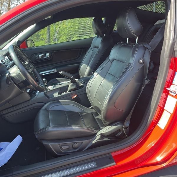 2020 Ford Mustang GT Premium 12 LCD Digital Instrument Cluster w/MyColor, 4-Wheel Disc Brakes, 9 Speakers, ABS brakes, Adaptive Cruise Control, Air Conditioning, Alloy wheels, AM/FM radio: SiriusXM, AM/FM Stereo, Auto-dimming Rear-View mirror, Automatic High Beam, Automatic temperature control, Blind Spot Info System w/Cross-Traffic Alert, Brake assist, Bumpers: body-color, Climate Controlled Heated/Cooled Front Seats, Compass, Delay-off headlights, Driver door bin, Driver vanity mirror, Dual front impact airbags, Dual front side impact airbags, Ebony Stripe, Electronic Stability Control, Emergency communication system: 911 Assist, Engine Spun Aluminum Instrument Panel, Equipment Group 401A, Exterior Parking Camera Rear, Ford Safe & Smart Package, Four wheel independent suspension, Front anti-roll bar, Front Bucket Seats, Front Center Armrest, Front dual zone A/C, Front fog lights, Front reading lights, Fully automatic headlights, Garage door transmitter, Gauge Pack (Oil Pressure & Vacuum), GT Performance Package, Heated door mirrors, Heated front seats, Heated Steering Wheel, Heavy-Duty Front Springs, Illuminated entry, Knee airbag, Lane-Keeping System, Larger Brake Rotors, Larger Radiator, Leather Bucket Seats, Leather Bucket Seats w/Color Accents, Leather Shift Knob, Linked Graphite Aluminum Instrument Panel, Low tire pressure warning, Memory Driver Seat, Mirrors & Ambient Lighting, Occupant sensing airbag, Outside temperature display, Overhead airbag, Overhead console, Panic alarm, Passenger door bin, Passenger vanity mirror, Power door mirrors, Power driver seat, Power passenger seat, Power steering, Power windows, Pre-Collision Assist w/Pedestrian Detection, Premium Floor Mats w/Accent Stitch, Premium Plus Package, Radio data system, Rain-Sensing Windshield Wipers, Rear anti-roll bar, Rear window defroster, Remote keyless entry, Security system, SiriusXM Radio, Speed control, Speed-sensing steering, Speed-Sensitive Wipers, Split folding rear seat, Spoiler, Steering wheel mounted audio controls, SYNC 3 Communications & Entertainment System, Tachometer, Telescoping steering wheel, Tilt steering wheel, Traction control, Trip computer, Turn signal indicator mirrors, Unique Stability Control, Variably intermittent wipers, Ventilated front seats, Voice-Activated Touch-Screen Navigation System, Voltmeter, Wheels: 18 x 8 Machined-Face Aluminum, Wheels: 19 x 9 Fr & 19 x 9.5 Rr Ebony Black.