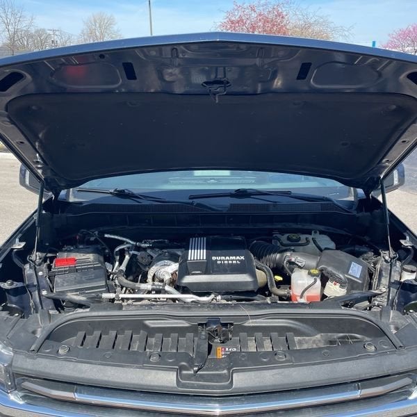 Blue Metallic 2021 Chevrolet Silverado 1500 High Country 4WD 10-Speed Automatic 3.0L I6 10-Speed Automatic, 4WD, Black Leather, 10-Way Power Driver Seat w/Lumbar, 10-Way Power Passenger Seat Adjuster w/Lumbar, 12-Volt Rear Auxiliary Power Outlet, 120-Volt Bed Mounted Power Outlet, 120-Volt Instrument Panel Power Outlet, 15 Diagonal Multicolor Head-Up Display, 170 Amp Alternator, 220 Amp Alternator, 2nd Row Heated Outboard Seats, 3.23 Rear Axle Ratio, 4-Wheel Disc Brakes, 4G LTE Wi-Fi Hot Spot Capable, 7 Speakers, 8 Driver Information Center, ABS brakes, Adaptive Cruise Control, Advanced Trailering System, Air Conditioning, Alloy wheels, AM/FM radio: SiriusXM with 360L, Apple CarPlay/Android Auto, Auto-dimming door mirrors, Auto-Dimming Inside Rear-View Mirror, Auto-dimming Rear-View mirror, Auto-Locking Rear Differential, Automatic Emergency Braking, Automatic temperature control, Auxiliary External Transmission Oil Cooler, Bed View Camera, Bluetooth® For Phone, Brake assist, Bumpers: body-color, Chevrolet Connected Access Capable, Chevytec Spray-On Black Bedliner, Chrome Assist Steps, Chrome Grille, Chrome Recovery Hooks, Color-Keyed Carpeting Floor Covering, Compass, Deep-Tinted Glass, Delay-off headlights, Driver door bin, Driver Memory, Driver vanity mirror, Dual Exhaust w/Polished Outlets, Dual front impact airbags, Dual front side impact airbags, Electric Rear-Window Defogger, Electrical Lock Control Steering Column, Electronic Cruise Control, Electronic Stability Control, Engine Block Heater, EZ Lift Power Lock & Release Tailgate, Floor Mounted Center Console, Following Distance Indicator, Forward Collision Alert, Front anti-roll bar, Front Black Bowtie Emblem (LPO), Front Bucket Seats, Front Carpeted Floor Mats, Front Center Armrest, Front dual zone A/C, Front fog lights, Front LED Fog Lamps, Front License Plate Kit, Front Pedestrian Braking, Front reading lights, Front wheel independent suspension, Fully automatic headlights, Garage door transmitter, HD Rear Vision Camera, HD Surround Vision w/2 Trailer View Camera Provisions, Heated door mirrors, Heated Driver & Front Outboard Passenger Seats, Heated front seats, Heated Steering Wheel, Heated steering wheel, Heavy Duty Suspension, Heavy-Duty Air Filter, Hill Descent Control, Hitch Guidance, Hitch Guidance w/Hitch View, Illuminated entry, Integrated Trailer Brake Controller, IntelliBeam Automatic High Beam On/Off, Keyless Open & Start, Lane Change Alert w/Side Blind Zone Alert, Lane Keep Assist w/Lane Departure Warning, Leather Wrapped Steering Wheel, LED Cargo Area Lighting, Low tire pressure warning, Manual Tilt/Telescoping Steering Column, Memory seat, Molded Black Splash Guards (LPO), Multi-Flex Tailgate, Navigation System, Occupant sensing airbag, Off-Road Suspension, OnStar & Chevrolet Connected Services Capable, Outside Heated Power-Adjustable Mirrors, Outside temperature display, Overhead airbag, Overhead console, Painted Mirror Caps, Panic alarm, Passenger door bin, Passenger vanity mirror, Perforated Leather Seat Trim, Power Door Locks, Power door mirrors, Power driver seat, Power Front Passenger Windows w/Express Up/Down, Power Front Windows w/Driver Express Up/Down, Power passenger seat, Power Rear Windows w/Express Down, Power Sliding Rear Window w/Rear Defogger, Power steering, Power Tailgate, Power windows, Preferred Equipment Group 3LZ, Premium audio system: Chevrolet Infotainment 3 Premium, Radio data system, Radio: Chevrolet Infotainment 3 Premium System, Rear Camera Mirror, Rear Carpeted Floor Mats, Rear Cross Traffic Alert, Rear Dual USB Charging-Only Ports, Rear reading lights, Rear seat center armrest, Rear step bumper, Rear Wheelhouse Liners, Rear window defroster, Remote keyless entry, Remote Vehicle Starter System, Safety Alert Seat, Safety Package II, Security system, SiriusXM w/360L, Speed control, Speed-sensing steering, Split folding rear seat, Standard Tailgate, Steering Wheel Audio Contro
