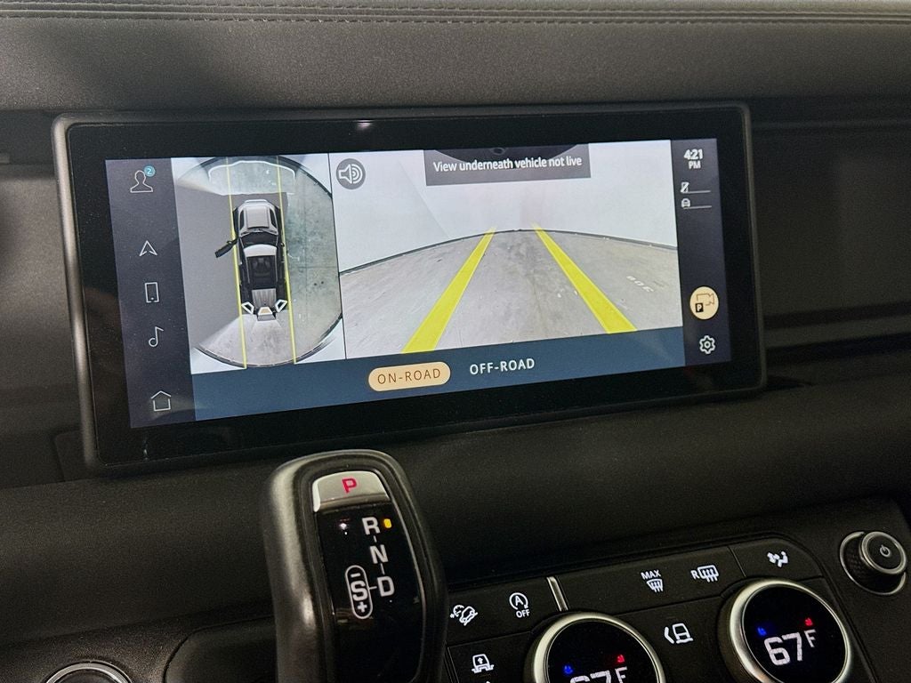 2021 Land Rover Defender 110 X-Dynamic SE 11 Speakers, 12-Way Electric Memory Seats, 3.55 Axle Ratio, 4-Wheel Disc Brakes, ABS brakes, Adaptive suspension, Air Conditioning, Alloy wheels, AM/FM radio: SiriusXM, Apple CarPlay & Android Auto, Auto High-beam Headlights, Auto tilt-away steering wheel, Auto-dimming door mirrors, Auto-dimming Rear-View mirror, Automatic temperature control, Brake assist, Bumpers: body-color, Compass, Delay-off headlights, Driver door bin, Driver vanity mirror, Dual front impact airbags, Dual front side impact airbags, Electronic Stability Control, Four wheel independent suspension, Front anti-roll bar, Front Bucket Seats, Front Center Armrest, Front dual zone A/C, Front fog lights, Front reading lights, Fully automatic headlights, Garage door transmitter: HomeLink, Grained Leather Seat Trim, Heated door mirrors, Illuminated entry, Leather Shift Knob, Leather steering wheel, Low tire pressure warning, Memory seat, Navigation system: Connected Navigation PIVI Pro, Occupant sensing airbag, Outside temperature display, Overhead airbag, Overhead console, Panic alarm, Passenger door bin, Passenger vanity mirror, Power door mirrors, Power driver seat, Power passenger seat, Power steering, Power windows, Radio data system, Radio: 400W 11 Speaker Meridian Sound System, Rain sensing wipers, Rear anti-roll bar, Rear fog lights, Rear reading lights, Rear seat center armrest, Rear window defroster, Rear window wiper, Remote keyless entry, Roof rack: rails only, Security system, Speed control, Speed-sensing steering, Speed-Sensitive Wipers, Split folding rear seat, Steering wheel memory, Steering wheel mounted audio controls, Tachometer, Telescoping steering wheel, Tilt steering wheel, Traction control, Trip computer, Variably intermittent wipers, Weather band radio.