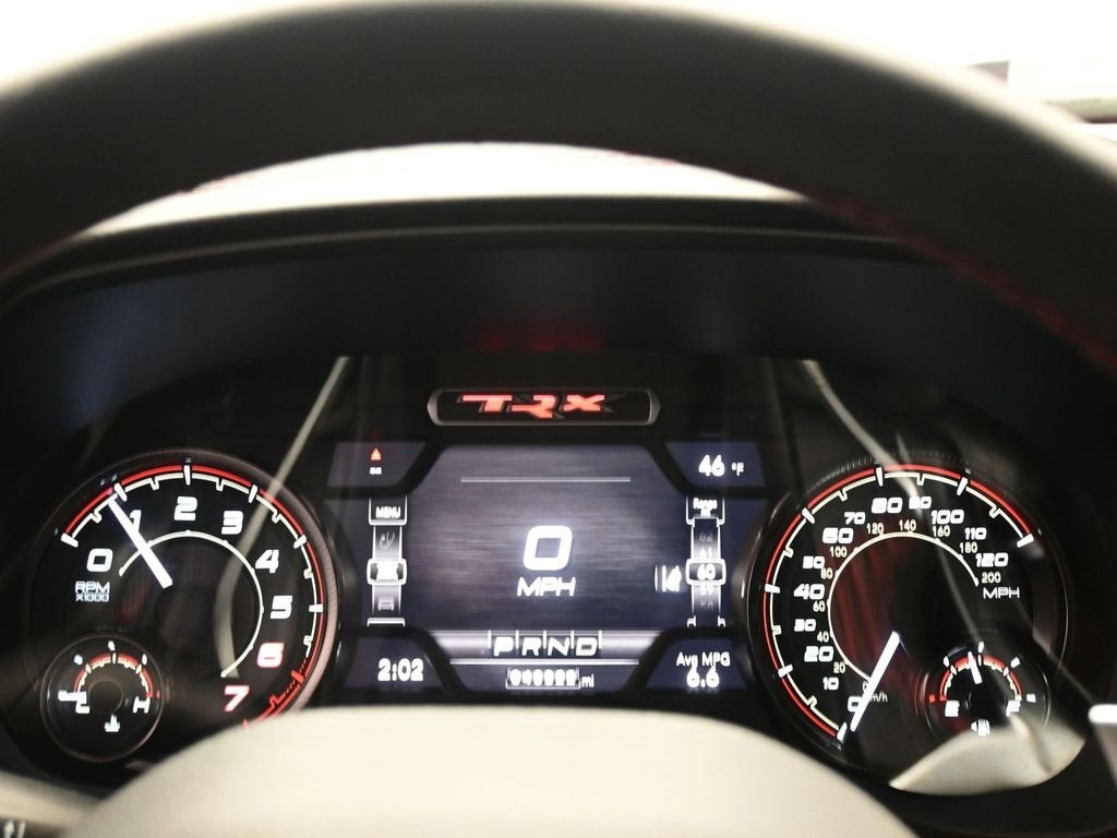 Flame Red Clearcoat 2022 Ram 1500 TRX 4WD 8-Speed Automatic 6.2L Supercharged HEMI V8 SRT #2 Seat Foam Cushion, 10 Speakers, 2-Door Passive Entry, Front Door Locks, 3.55 Rear Axle Ratio, 4 Way Front Headrests, 4-Wheel Disc Brakes, ABS brakes, Adaptive Cruise Control w/Stop & Go, Adaptive suspension, Advanced Safety Group, Air Conditioning, Alloy wheels, AM/FM radio: SiriusXM with 360L, Apple CarPlay/Android Auto, Auto High-beam Headlights, Auto-dimming door mirrors, Auto-dimming Rear-View mirror, Automatic temperature control, Bed Utility Group, Black Exterior Mirrors, Blind Spot & Cross Path Detection, Body Color Door Handles, Brake assist, Bucket Seats, Center Console Parts Module, Cloth/Vinyl Bucket Seats, Compass, Delay-off headlights, Digital Rearview Mirror, Dome Dual LED Reading Lamp, Driver door bin, Driver Seat Memory, Driver/Passenger Wrapped Assist Handles, Dual front impact airbags, Dual front side impact airbags, Dual-Pane Panoramic Sunroof, Electronic Stability Control, Exterior Mirrors Courtesy Lamps, Exterior Mirrors w/Heating Element, Exterior Mirrors w/Memory, Exterior Mirrors w/Supplemental Signals, Front anti-roll bar, Front Bucket Seats, Front Center Armrest w/Storage, Front Door Accent Lighting, Front dual zone A/C, Front fog lights, Front reading lights, Front Seat Back Map Pockets, Front wheel independent suspension, Full Length Premium Upgraded Floor Console, Fully automatic headlights, harman/kardon 19 Speaker Premium Sound, Heads-Up Display, Heated door mirrors, Heated Front Seats, Heated Second Row Seats, Heated Steering Wheel, Illuminated entry, IP LED Ambient Light Pipe, Lane Keep Assist, Leather Shift Knob, Leather steering wheel, Leather Trimmed Bucket Seats, Leather/Carbon Flat-Bottom Steering Wheel, Leather/Suede Flat-Bottom Steering Wheel, LED CHMSL Lamp, Low tire pressure warning, Luxury Front Door Trim Panel, MOPAR 4 Adjustable Cargo Tie-Down Hooks, MOPAR Bright Pedal Kit, MOPAR Deployable Bed Step, MOPAR Spray In Bedliner, Navigation System, Occupant sensing airbag, Outside temperature display, Overhead airbag, Overhead console, Panic alarm, ParkSense Front/Rear Park Assist w/Stop, ParkView Rear Back-Up Camera, Passenger door bin, Passenger vanity mirror, Pedestrian Emergency Braking, Pick-Up Box Lighting, Power 4-Way Driver Lumbar Adjust, Power 4-Way Passenger Lumbar Adjust, Power 8-Way Driver & Passenger Seats, Power Adjustable Pedals w/Memory, Power door mirrors, Power driver seat, Power steering, Power windows, Power-Folding Mirrors, Premium Wrapped IP Bezel, Quick Order Package 29Y, Radio data system, Radio: Uconnect 5 Nav w/12.0 Display, Radio/Driver Seat/Mirrors/Pedals Memory, Rain Sensitive Windshield Wipers, Real Carbon Fiber Interior Accents, Rear 60/40 Folding Seat, Rear 60/40 Folding Split Recline Seat, Rear Door Accent Lighting, Rear seat center armrest, Rear step bumper, Rear Underseat Compartment Storage, Rear Window Defroster, Remote keyless entry, Remote Tailgate Release, Security system, Speed control, Split folding rear seat, Sport steering wheel, Steering wheel mounted audio controls, Sun Visors w/Illuminated Vanity Mirrors, Surround View Camera System, Tachometer, Tailgate Ajar Warning Lamp, Telescoping steering wheel, Tilt steering wheel, Traction control, Trailer Brake Control, Trip computer, TRX Carbon Fiber Package, TRX Level 2 Equipment Group, TRX Red Interior Accents, Turn signal indicator mirrors, Universal Garage Door Opener, Variably intermittent wipers, Ventilated Front Seats, Ventilated Rear Seats, Voltmeter, Wheels: 18 x 9 Black Paint/Polish Aluminum, Wireless Charging Pad.Odometer is 10960 miles below market average!